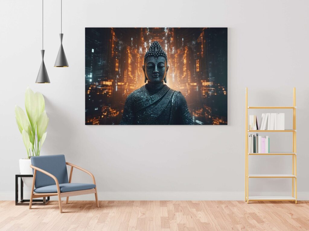 Transform your space into a sanctuary of tranquility with our exquisite Buddha wall paintings. Crafted with meticulous detail and imbued with spiritual serenity, each piece radiates peace and harmony. Elevate your home decor with these timeless artworks, perfect for creating a serene ambiance in any room. Explore our collection and invite the essence of enlightenment into your living space today The canvas is carefully stretched over a durable wooden frame, creating a gallery-quality finish that adds a touch of elegance to any room. Whether you’re looking for a Buddha framed painting for wall or a Buddha big wall painting with frame