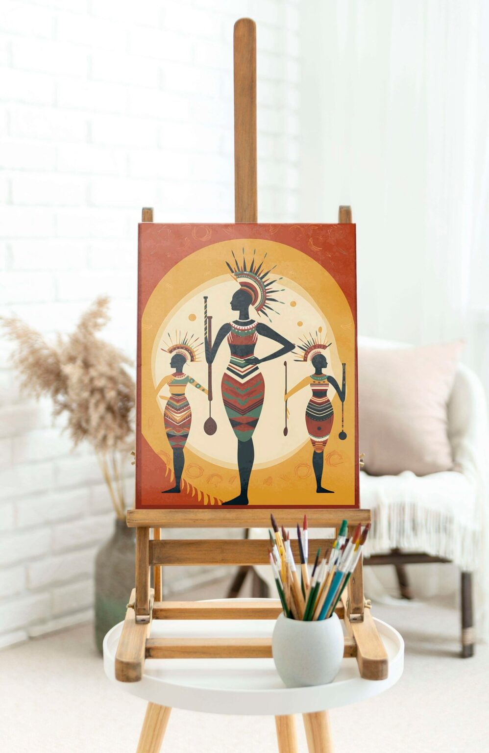Sophisticated golden round frame painting, the perfect addition to your office.