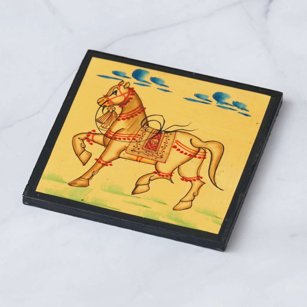 Handcrafted Wooden Horse Hand-Painted Tea Coaster Set: Artistic Table Protection